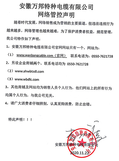 鄭重聲明:安徽萬邦特種電纜有限公司官方網站為:www_wanbangcable_com.fangchelvyou.cn,除此之外無任何子網站或合作網站,其余均為假冒偽劣。電話:0550-7621728 13485756353 地 址:安徽省天長市滁州高新技術產業開發區經四路29號
